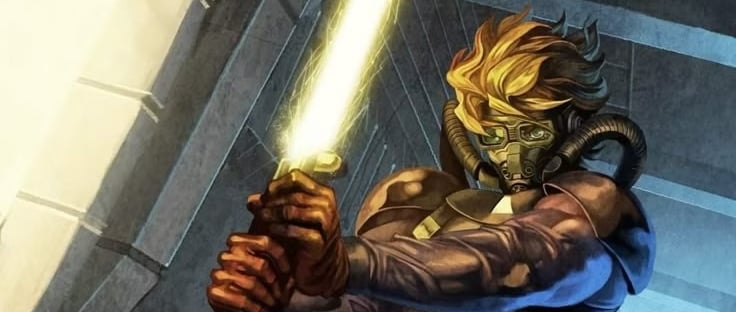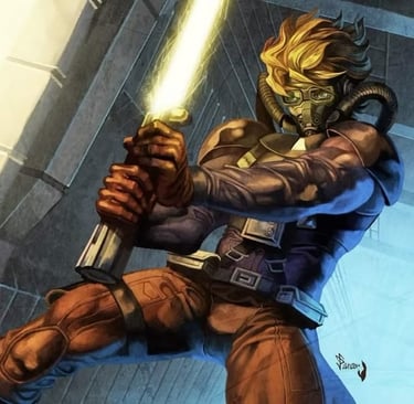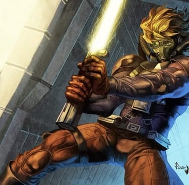 O desenvolvimento de Star Wars foi muitíssimo tumultuado. Entre os vários esboços de George Lucas, tivemos títulos como ´´As Aventuras de Luke Starkiller´´, com Luke com um visual bastante alternativo (visto acima), e um nome que seria reutilizado para o personagem Galen Marek.