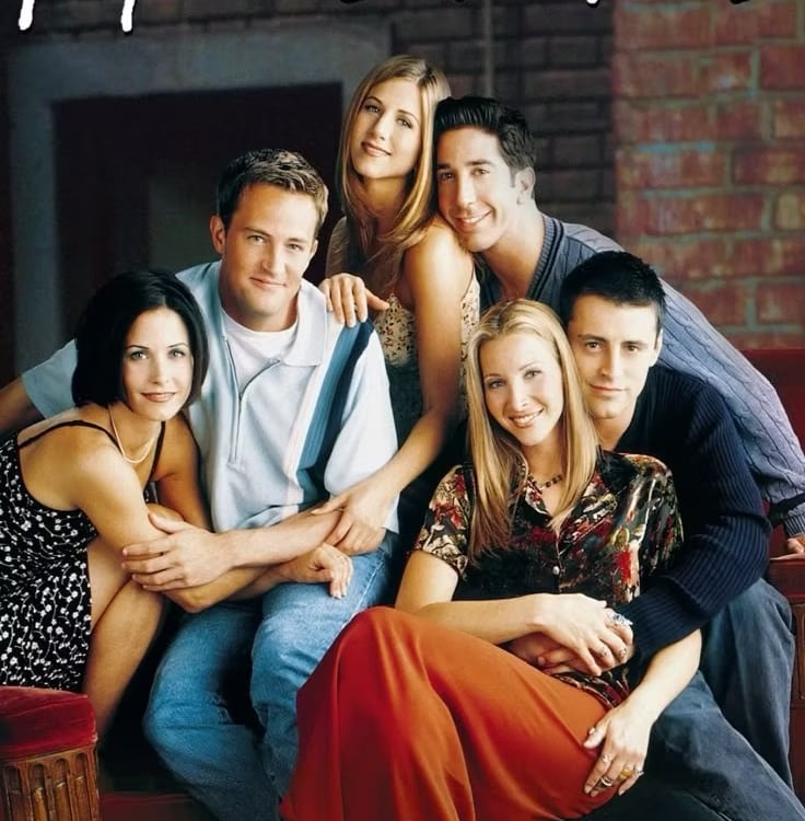 O seriado contava com seis protagonistas: além de Jennifer Aniston (Rachel) e Courteney Cox (Monica), estavam Matthew Perry (Chandler), Matt LeBlanc (Joey), David Schwimmer (Ross) e Lisa Kudrow (Phoebe), formando um dos elencos mais icônicos da história da TV.