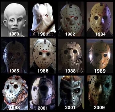 Jason apareceu pela primeira vez no segundo filme da saga, em 1981, com o visual bastante diferente, utilizando um saco furado para esconder sua identidade. Apenas na parte 3, ele obteve a máscara de Hockey que seria o rosto que lhe definiria na cultura pop.