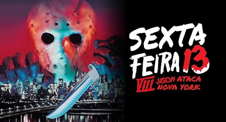Após o fracasso contundente da parte 7 (conhecida popularmente como Carrie vs Jason), os produtores decidiram levar o vilão para uma cidade grande, deixando o cenário repetitivo de Cristal Lake. Nova York era de longe a melhor escolha, mas não cabia no orçamento. Por isso, das uma hora e vinte de filme, quase 50 se passam em um barco saindo de Cristal Lake (que por ser um lago, não poderia se ligar com um oceano, mas, acho que os roteiristas não manjavam de geografia...).