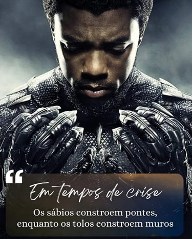 Em tempos de crise, cada um desses grupos se voltam contra o outro, criando ainda mais conflito e discórdia. Pantera Negra nos ensina a agir com coragem: abraçar os outros, ajudar e se permitir ser ajudado.