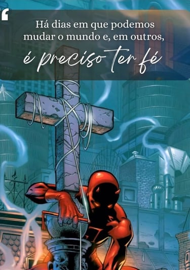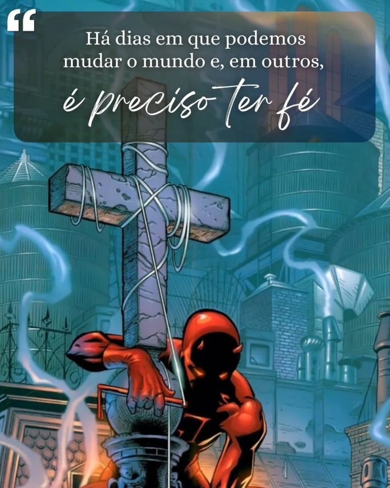 🙏 A crença em uma força superior que lhe guiava, o manteve de pé, permitindo que retomasse sua guerra contra o crime. As falas e ações do Demolidor, nos provam com clareza: todos nós temos capacidade de fazer coisas incríveis, mas, nem todos os dias são de vitórias.