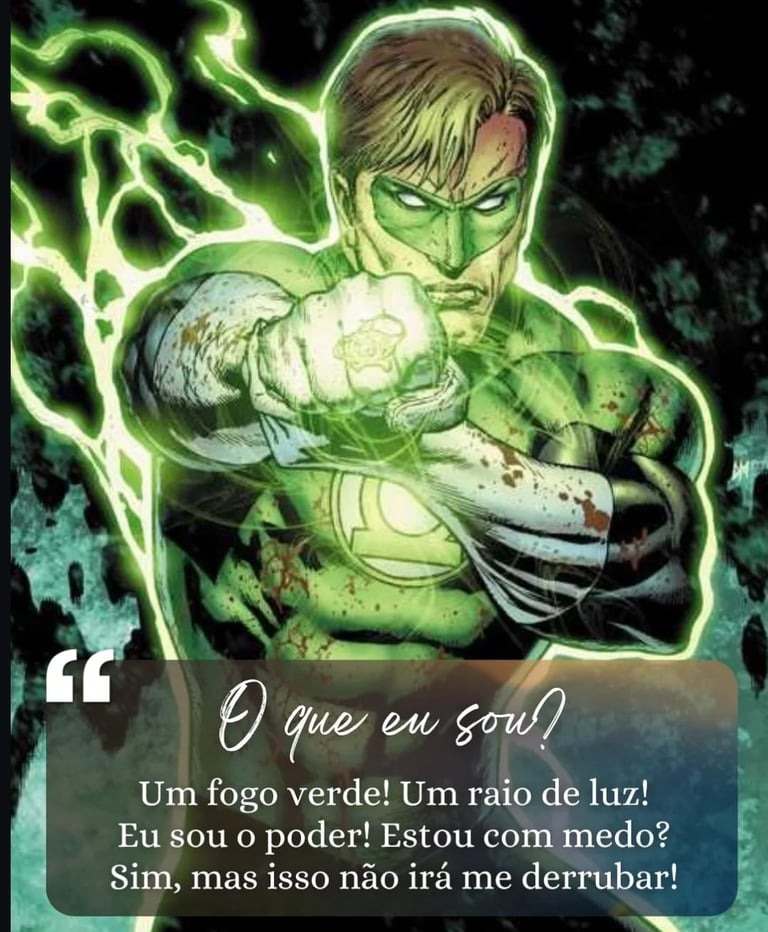E esse lema vale para todos nós. Muitas vezes, o medo de errar nos faz desistir de nossos sonhos. Devemos, assim como o Lanterna Verde, entender nossos medos, mas valorizar nossas qualidades e nossa força, colocando-as acima dele.