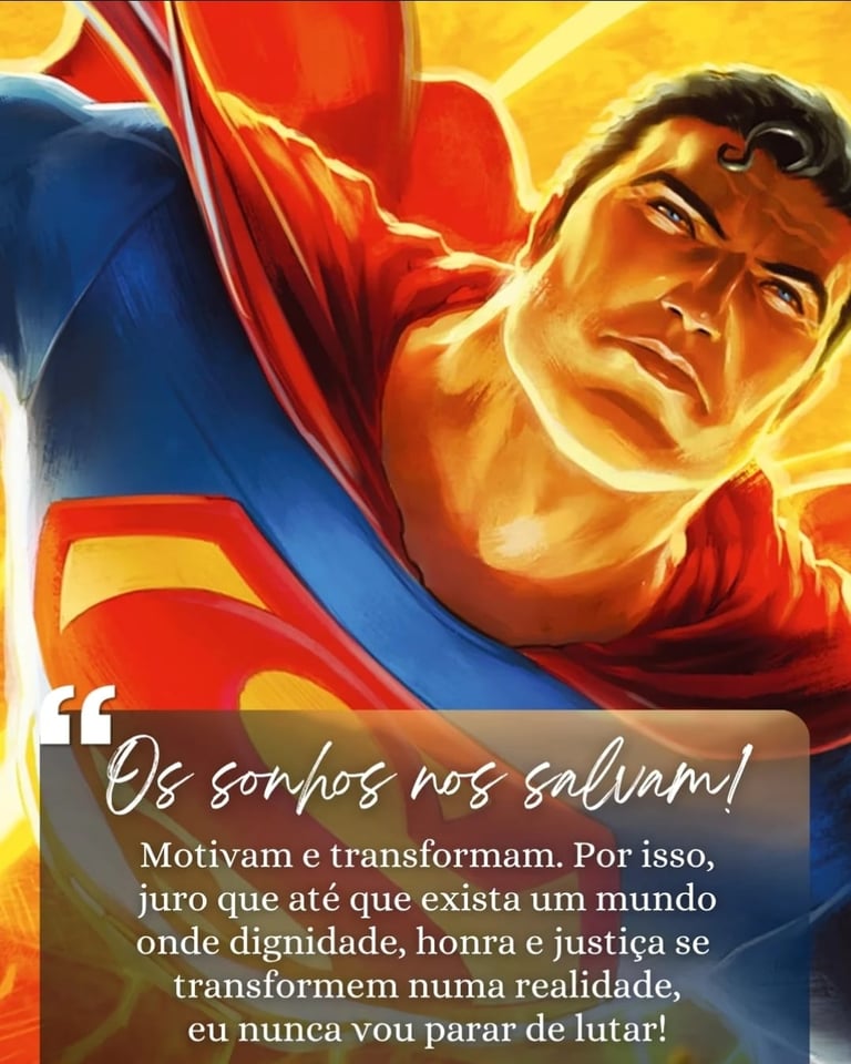 Essa frase não poderia ter outro autor, se não o Homem de Aço. Superman é considerado por muitos na atualidade como um herói cafona, com ideais ultrapassados. E essa frase pode soar motivacional, porém, é muito mais do que isso.