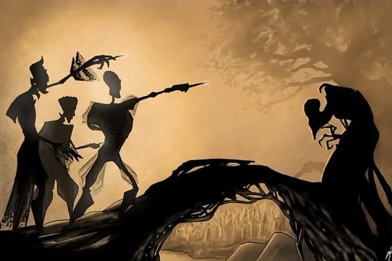 Voldemort, seria o Irmão mais velho, portador da varinha das varinhas. Sedento por poder e sangue, usava seu poder apenas para o mal, desejando o poder para escapar da morte através da força, assim como Voldemort. Porém, a morte o levou em um momento de fraqueza. O irmão do meio, seria Dumbledore. Esse irmão utilizou a Pedra da Ressurreição para rever sua esposa falecida, mas sem poder tocá-la. Assim, ele tirou a própria vida para poder, enfim, vê-la e senti-la novamente.