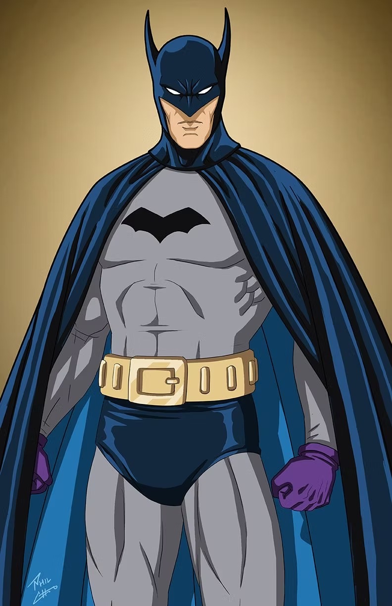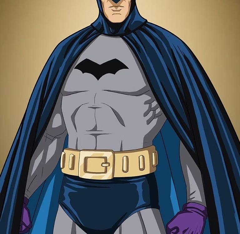 Wayne atravessa a passagem secreta atrás de seu imenso relógio de ponteiro. Descendo pelas escadas, a bela mansão clássica revela sua segunda face: a horripilante caverna em seu subsolo, a Batcaverna. Bruce veste seu traje, com orelhas pontudas, capa negra e luvas longas, possuindo barbatanas em seus antebraços, e para completar, o símbolo do morcego, aquele que instigava terror no coração dos criminosos.