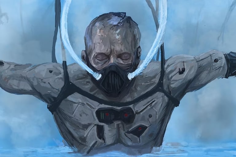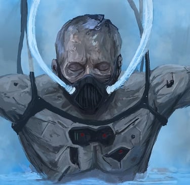 Aquele traje infeliz havia lhe tirado até mesmo o prazer de comer sólidos, o humilhando a ponto de ser obrigado a comer somente uma espécie de ração pastosa super nutritiva, enfiada por tubos direto na sua boca, e assim que era digerida, era filtrada e consumida novamente, alguém tão poderoso, vivendo de comer os próprios dejetos.