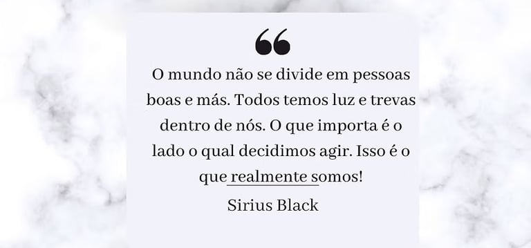 Sirius o acalma, e tocando seu peito, diz que aqueles que amamos, nunca nos deixam de verdade, nos sempre podemos encontra-los em nossos corações, assim como Harry podia encontrar seus pais no seu. Essa é mais uma frase belíssima, forte para enfrentar a dor que uma perda pode causar.