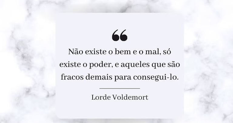 Essa frase foi dita pelo próprio Lorde das Trevas, enquanto possuía o corpo do professor Quirell. Enquanto ele confrontava Harry na sala da Pedra Filosofal, Voldemort revela sua visão deturpada de mundo, dizendo que não existe uma moral verdadeira um ´´bem´´ ou um ´´mal´´, somente o poder, dizendo que tem o poder, define o certo ou o errado. Para alguns pode fazer sentido, para outros, pode-se acreditar que existem verdades universais sobre certo e errado, que se sobrepõe a qualquer poder.