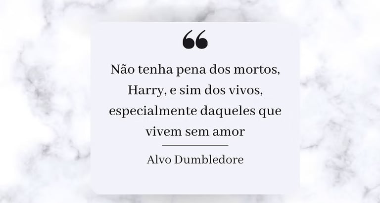 Dumbledore é o pai das frases de efeito, e esta, proferida no limbo em que Harry se encontrava após sua ´´morte´´ pelas mãos de Voldemort, é uma das mais profundas. Potter estava desolado por todos que morreram na batalha de Hogwarts, além de ficar sentido ao ver o pedaço do alma de Voldemort que havia morrido pouco antes.