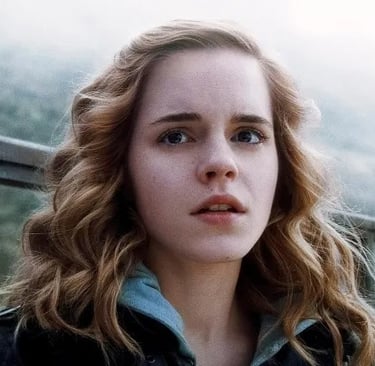 Hermione Granger nasceu de um casal de dentistas trouxas, e ninguém sabe ao certo qual ancestral de Hermione teria um vínculo com o mundo bruxo. Aos 11 anos, a jovem recebe sua carta para Hogwarts, onde conhece seus melhores amigos, Harry e Rony. Granger era a aluna mais genial da Grifinória, sendo essencial para a vitória de Harry contra Voldemort nos dois primeiros filmes. Seu brilhantismo é tamanho, que muitos acreditam que Harry não passaria de Pedra Filosofal se não fosse por ela.