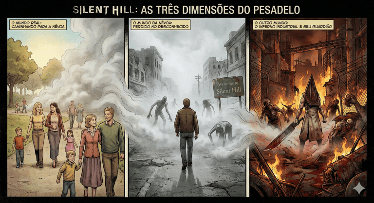 Uma estética implementada inicialmente para driblar as limitações técnicas do PS1 tornou-se, incrivelmente, o elemento mais horripilante da lore de Silent Hill, pois nos deixa a sós com a coisa mais assustadora que existe: nossa própria mente. Porém, existe um lugar ainda pior que o Mundo da Névoa, onde o terror sai do plano das ideias, e o monstro que você criou nelas, agora tem poder para te atacar no plano físico, esse é: o Outro Mundo.