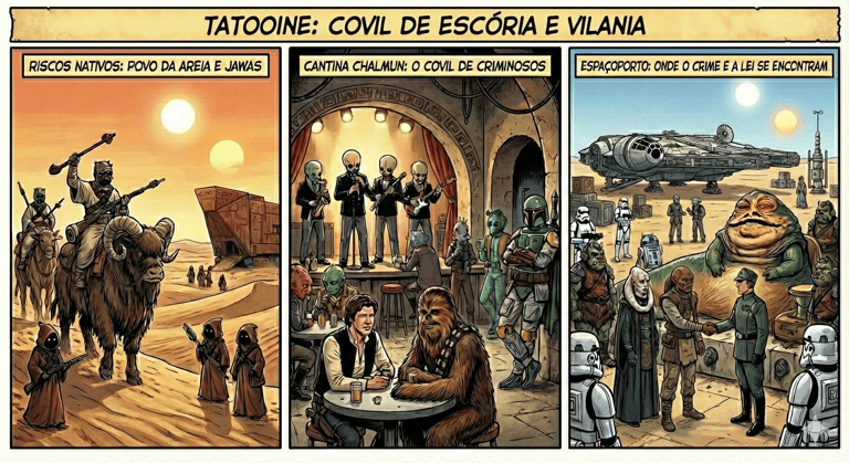 “Você não encontrará um lugar com mais escória e vilania”, essa fala de Obi Wan para Luke Skywalker enquanto observavam Mos Eisley ao longe resume com perfeição o quão caótica e perigosa é essa região de Tatooine.