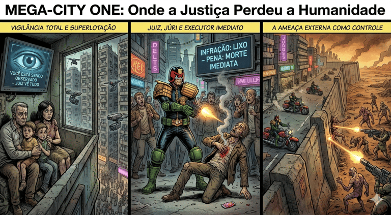Como podemos ver, uma cidade não precisa necessariamente ser assombrada, ou totalmente corrupta, para ser terrível. Basta que a lei que a rege, seja tão ruim quanto qualquer maldição ou grupo criminoso. Mega City-One não é uma cidade sem justiça, é uma cidade onde a justiça perdeu a humanidade.