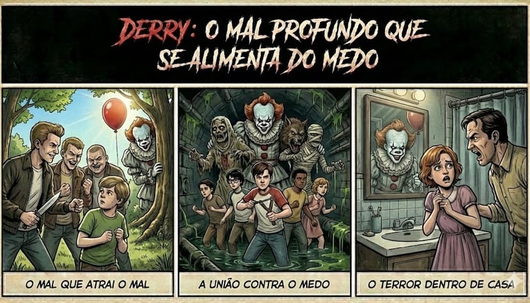 Viver em Derry não é como viver em Gotham ou Racoon City, onde o mal mostra sua face sem pestanejar. Em Derry, o mal lhe chama para sentar em uma mesa bela e farta, mas se omite em dizer que você será o prato principal. E aí, acha que iria suportar?