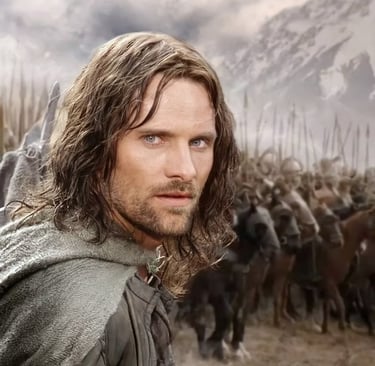 Ele lutou ao lado de Gandalf, Frodo e Legolas pela liberdade da Terra Média, liderando exércitos com sabedoria e honra, e conquistando o respeito unânime de todos ao seu redor.