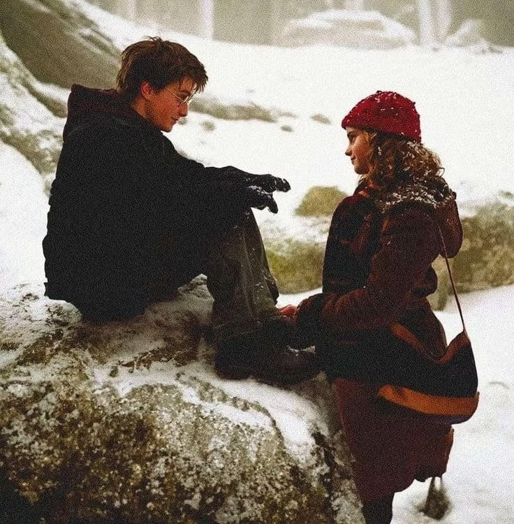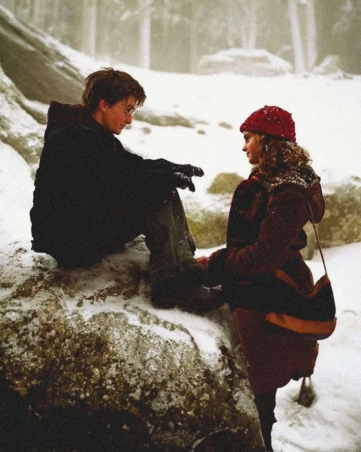 Ao longo da saga, houve alguns momentos que possibilitaram essa conexão, principalmente nos filmes. Mas e se Harry tivesse convidado Hermione para o Baile de Inverno? Esse momento poderia ter sido decisivo para o início de um romance. Ambos estariam frustrados: Harry por não ter sido chamado por Cho Chang e Hermione por não ter sido chamada por Rony ou Krum. Dessa forma, um serviria de apoio ao outro, o que seria um bom começo.